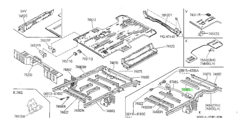 Vijfde dwarsligger chassis Nissan Vanette GC22 75450-11C30 Origineel.