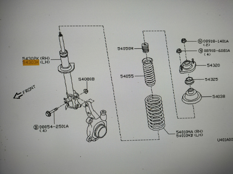 Dit onderdeel bestaat onder anderen uit een chassisveer 54010-4F119 en een schokdemper 54303-6F625.