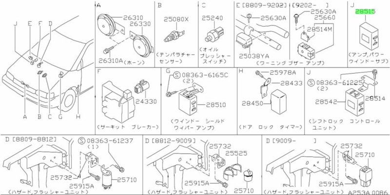 Versterker raambedieningssignaal Nissan 28516-89900 C32/ M11/ Y60 Gebruikt.