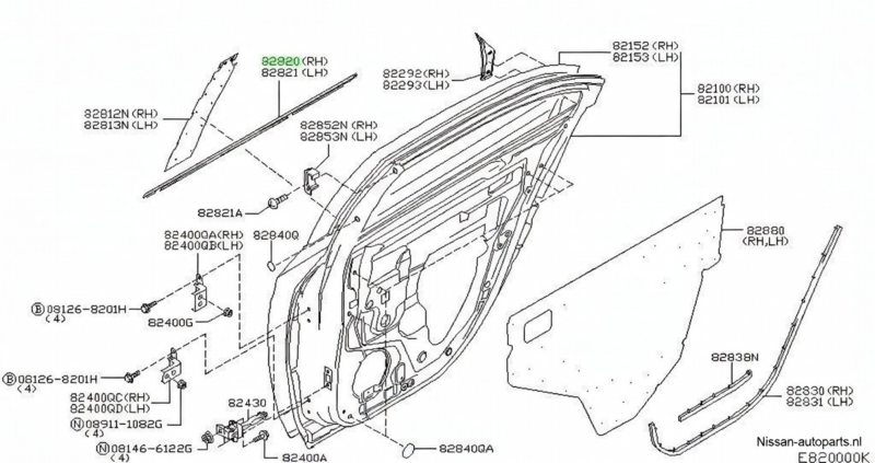Sierlijst buitenzijde achterportier rechts Nissan Primera P12 Wagon 82820-AV700 Gebruikt.
