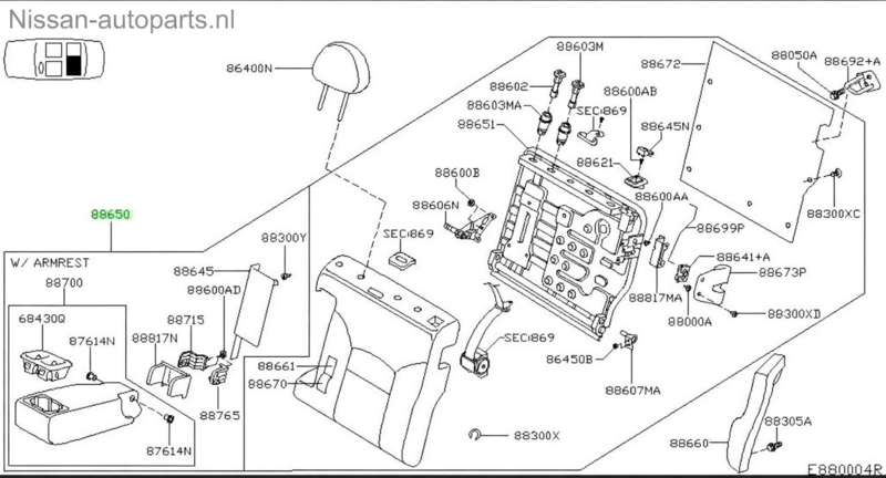 Achterbankrugleuning links Nissan Primera P12 88650-BA002 Gebruikt.