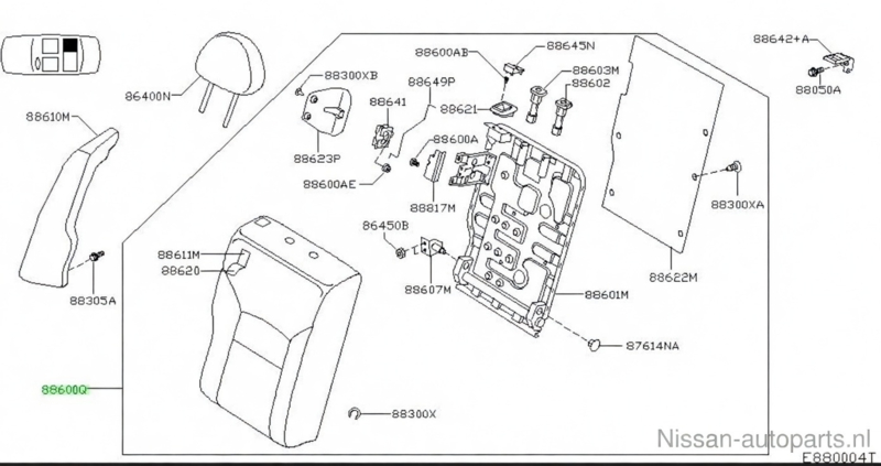 Achterbankrugleuning rechts Nissan Primera P12 88600-BA012 Gebruikt.