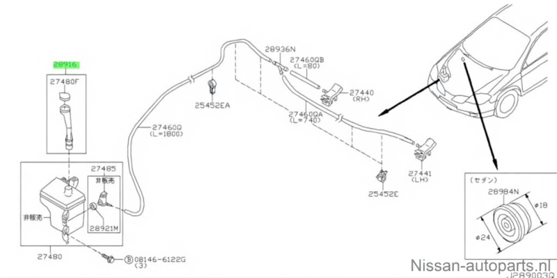 Vulhals ruitensproeierreservoir Nissan Primera P12 28915-AU010 gebruikt