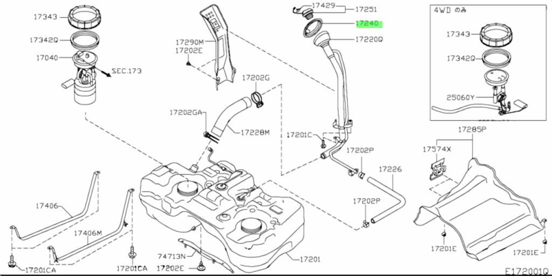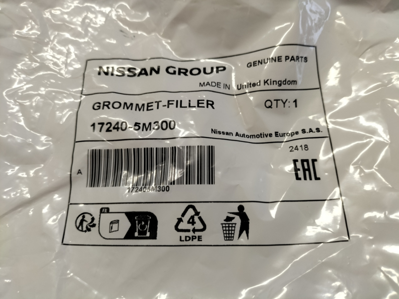 Afdichtrubber vulhals brandstoftank Nissan 17240-5M300 J10/ K11/ N16/ P11/ V10/ WP11 Origineel.