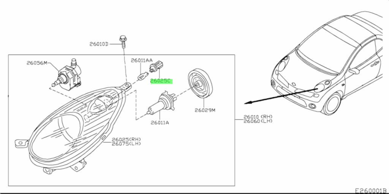 Artikelnummer: 262406F600 OverzichtBetreft een nieuw en origineel onderdeel voor in de linker of rechter koplamp van de volgende Nissan modellen: