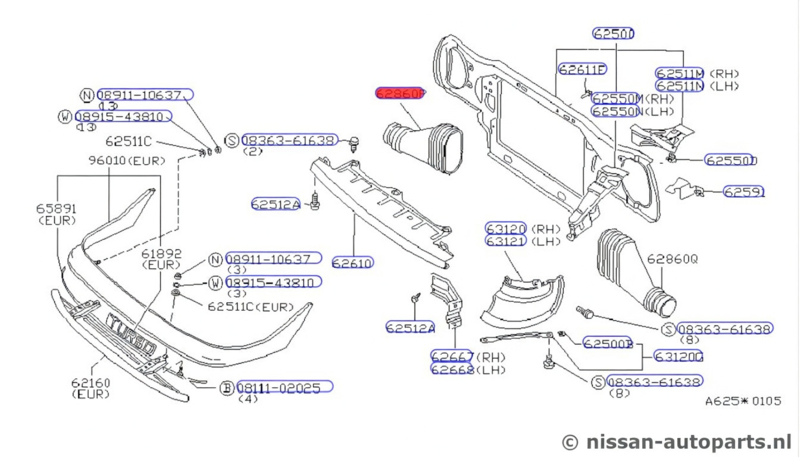 Artikelnummer: 62860P7100 62860P9100 OverzichtBetreft een gebruikt onderdeel welke voorkomt op een Nissan 280ZX S130 vanaf september 1981.