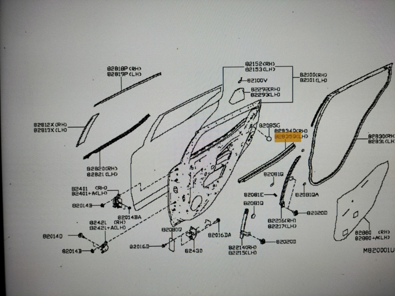 Aanstrijkrubber/raamgeleiding linksachter Nissan Micra K14 82835-5FA0A Gebruikt.