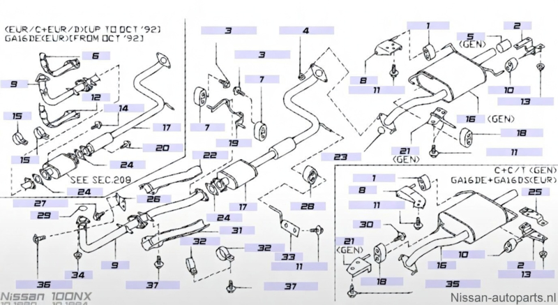 Bepaalde onderdelen van het uitlaatsysteem komen ook voor op andere Nissan modellen. Bijvoorbeeld: