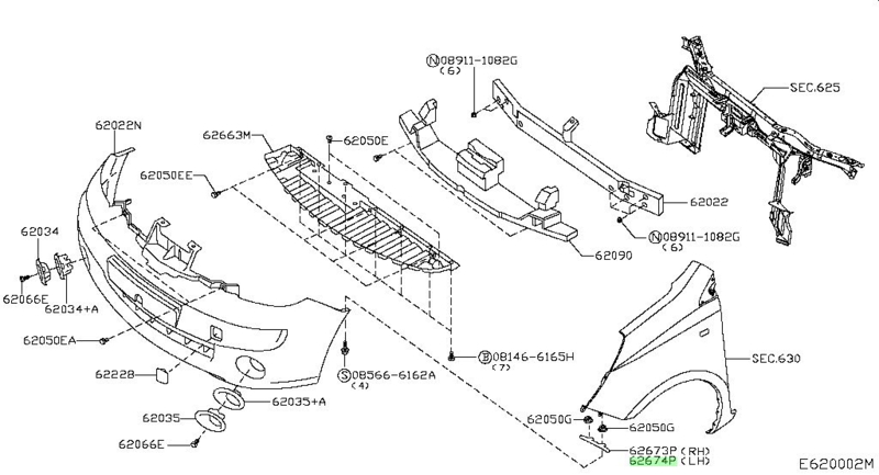 Onderbumper Nissan Note E11 62663-BH00H Origineel.Nieuw en origineel Nissan.Is geschikt voor de Nissan Note E11 van december 2008 tot november 2010.Betreft positie 62663M op de tekening.