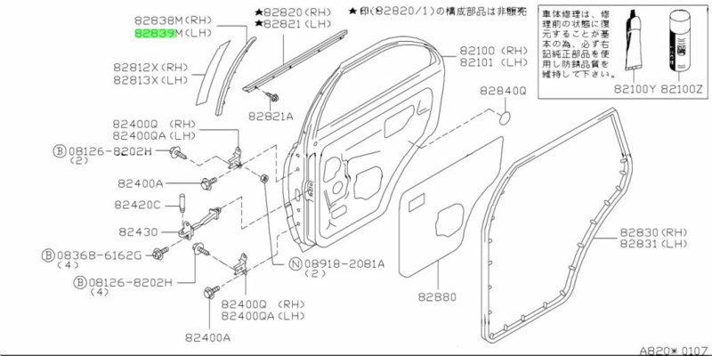 Seal-rear door partition left-hand Nissan 82839-0N800 Used part. Little damage.