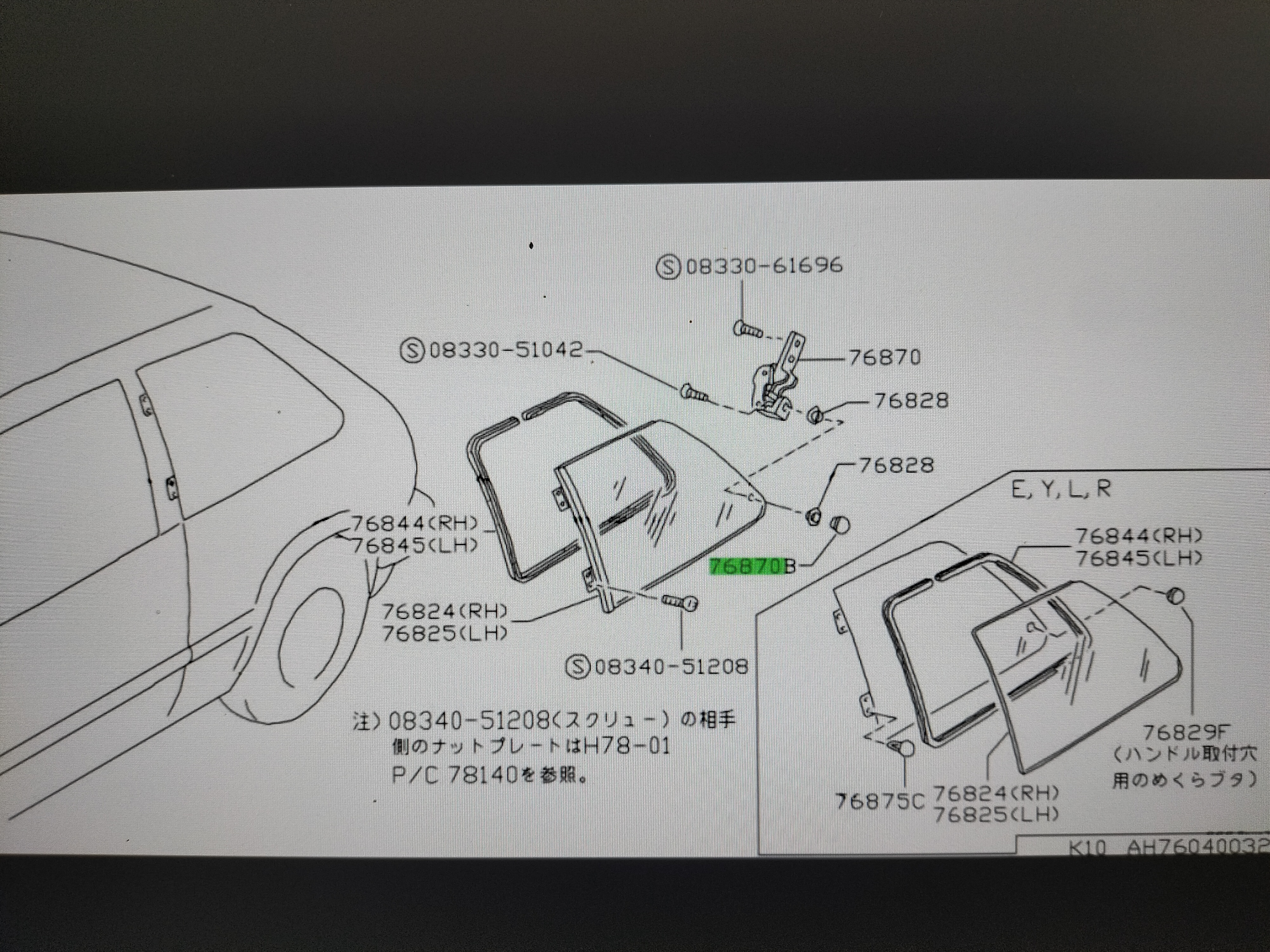 This part is used on a 3-door Nissan Micra with hinged rear side windows, manufactured from December 1982 onwards.