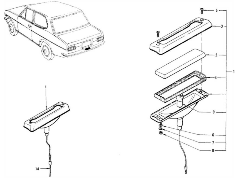 Assy-lamp licence Datsun Sunny B110 sedan 26510-H1900 (IKI6001) Used part.