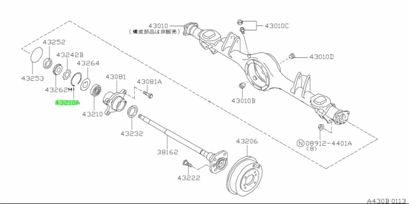Nissan Sunny Wagon Y10 half axle 4WD October 1994 - July 1995 rear axle. This concerns position number 43210A on the drawing.