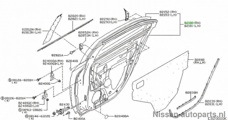 Door-rear, right-hand Nissan Primera P12 82100-BA130 (KY5) Used part.