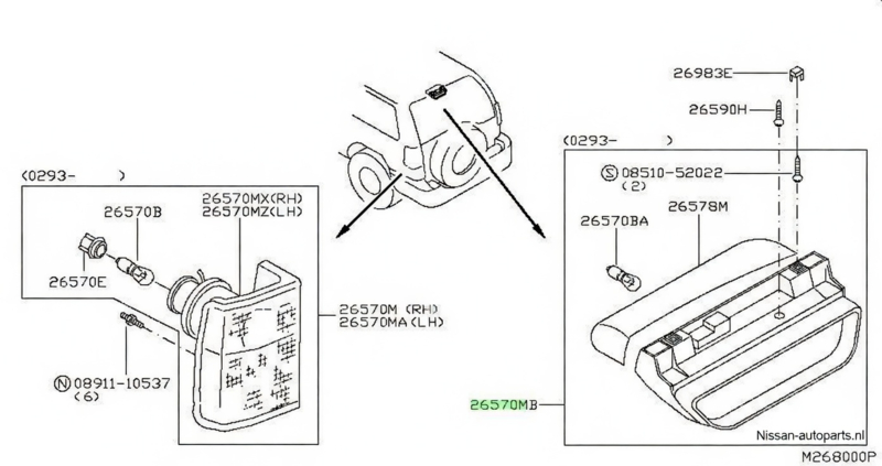 Lamp stop, high mounting Nissan Terrano2 R20 26590-0X001 Used part.
