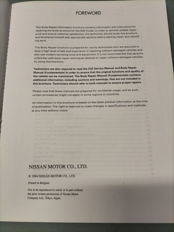 ''Body repair manual A32 '' Nissan Maxima A32 BR4E-0A32E0 Used part.