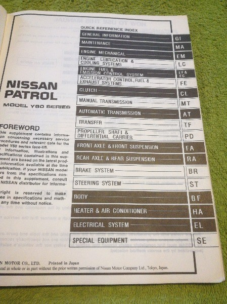 SKU: SM4EY60SE0 OverviewThis used service manual is suitable for the Nissan Patrol Y60.