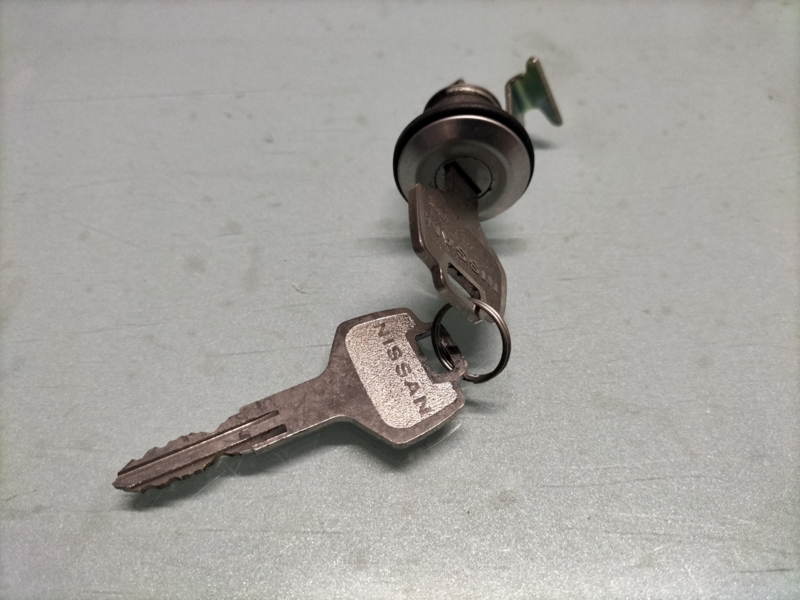 Cylinder set-gas filler lock Nissan 78840-01A25 B11/ E24 Original.Nissan Sunny B11 Van model from May 1983.